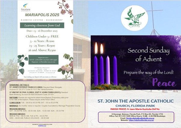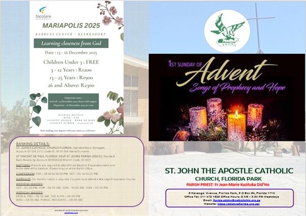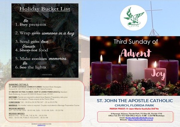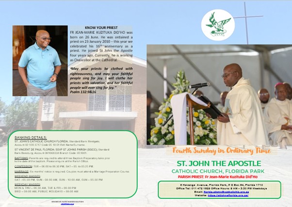 • Please note that the Parish office hours: 09h00 - 15h30