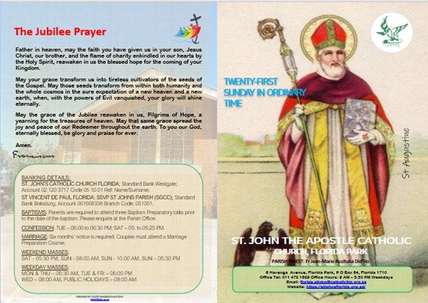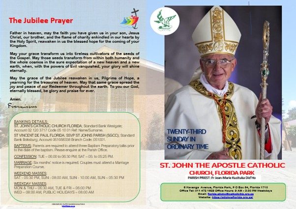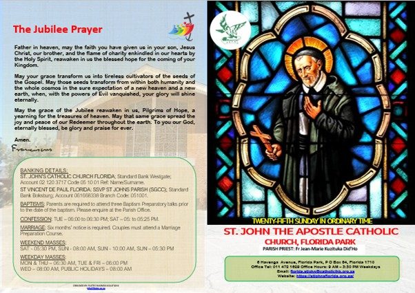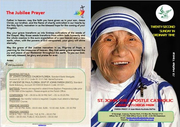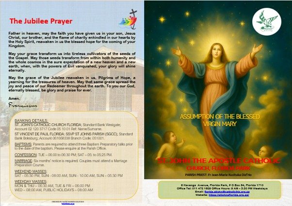 ST JOHN CATHOLIC CHURCH STANDARD BANK WESTGATE ACCOUNT NO: 02 120 3717 BRANCH NO: 01 56 41