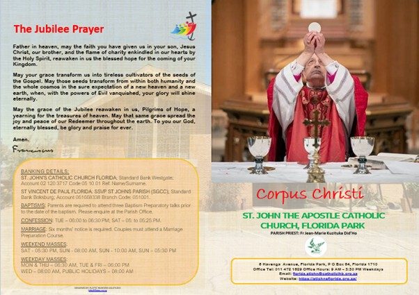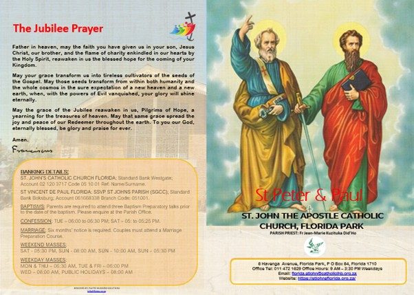 ST JOHN CATHOLIC CHURCH STANDARD BANK WESTGATE ACCOUNT NO: 02 120 3717 BRANCH NO: 01 56 41