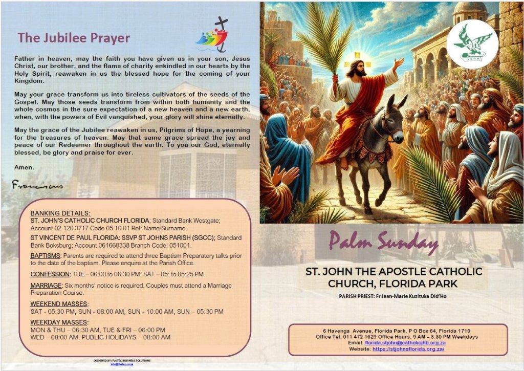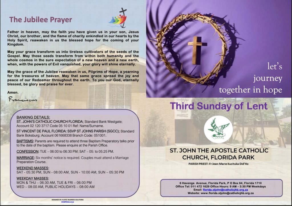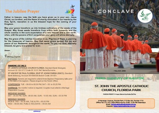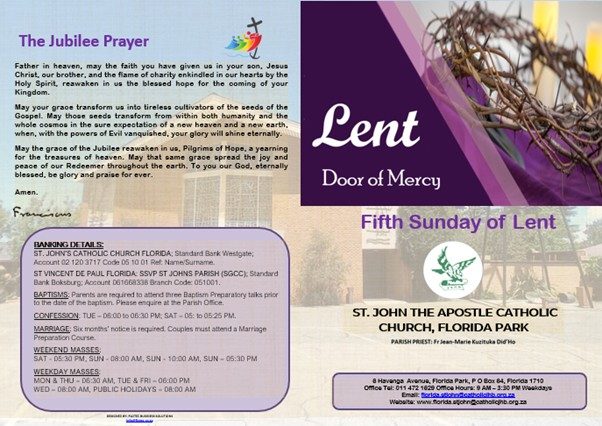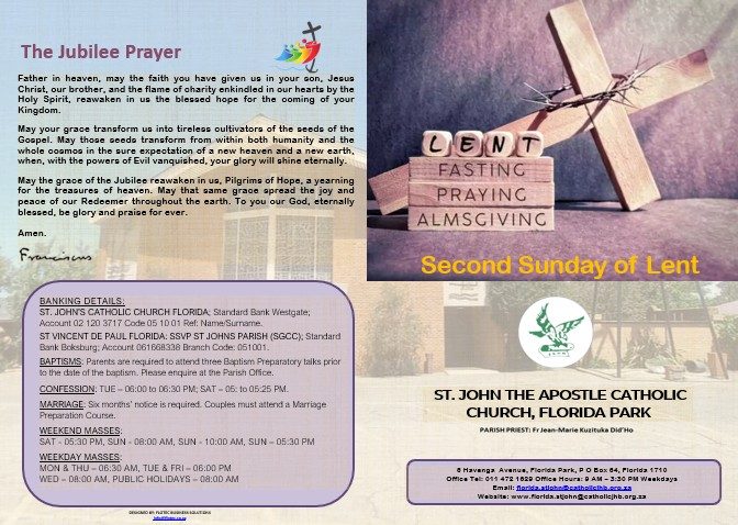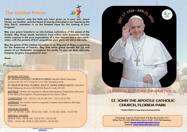 ST JOHN CATHOLIC CHURCH STANDARD BANK WESTGATE ACCOUNT NO: 02 120 3717 BRANCH NO: 01 56 41