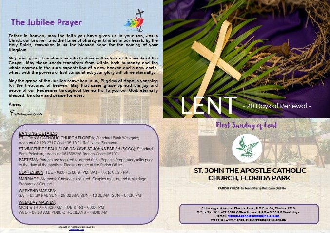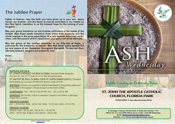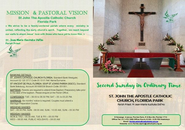 ST JOHN CATHOLIC CHURCH STANDARD BANK WESTGATE ACCOUNT NO: 02 120 3717 BRANCH NO: 01 56 41